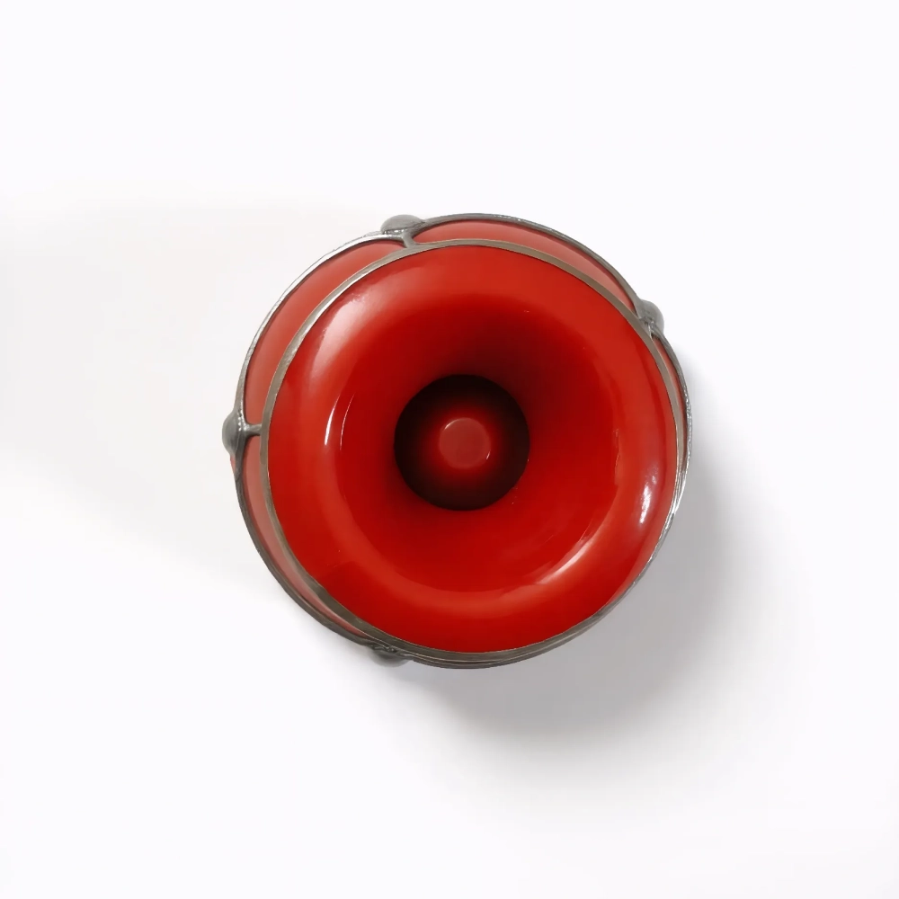 Un cendrier artisanal rouge éclatant, symbole de chaleur et d’authenticité.