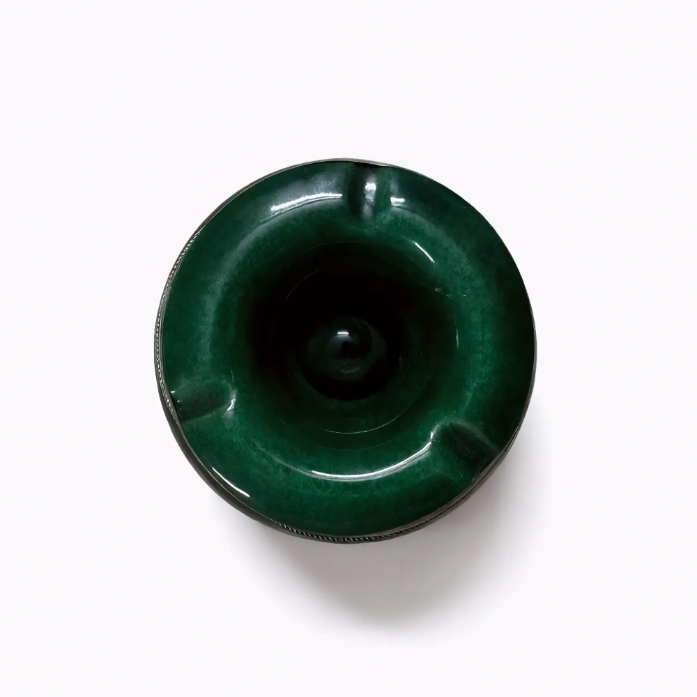 Un cendrier artisanal vert profond, symbole d’élégance naturelle et d’authenticité.